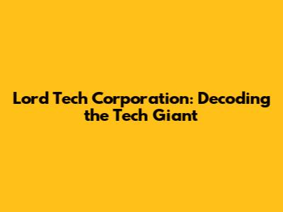 Lord Tech Corporation: Decoding The Tech Giant