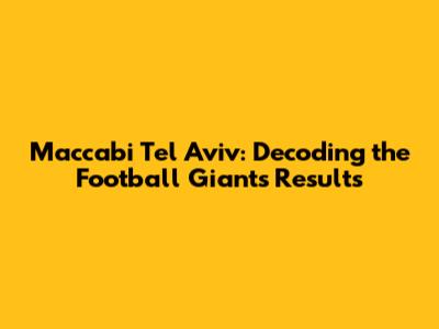 Recent Maccabi Tel Aviv Results: A Deep Dive
