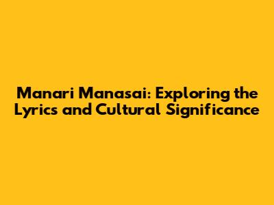 Manari Manasai: Exploring The Lyrics And Cultural Significance