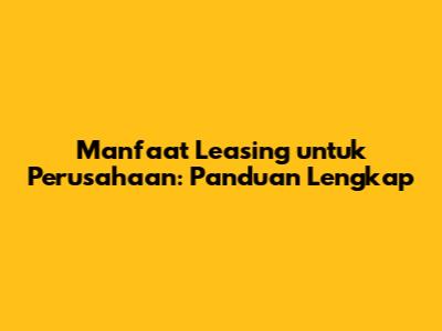 Manfaat Leasing Untuk Perusahaan: Panduan Lengkap