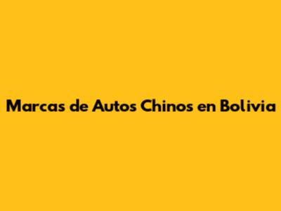 Marcas De Autos Chinos En Bolivia