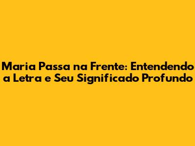 Maria Passa Na Frente: A Guia Completa Da Letra E Significado