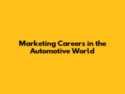 Marketing Careers In The Automotive World