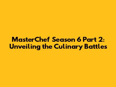 Hey foodies and MasterChef fanatics! Get ready to dive back into the flavorful world of MasterChef Season 6 Part 2! We're talking sizzling pans, culinary triumphs, and heartbreaking eliminations. This season was a rollercoaster, packed with intense challenges and some seriously talented home cooks battling it out for the coveted title. If you missed any of the action, or just want a refresher on the delicious drama, you're in the right place. Let's break down the highlights, the stand-out dishes, and the unforgettable moments that made this season so darn special. This recap will cover everything from the toughest Mystery Box challenges to the high-pressure Pressure Tests that separated the culinary masters from the aspiring chefs. Trust me, you won't want to miss a single morsel of the excitement!