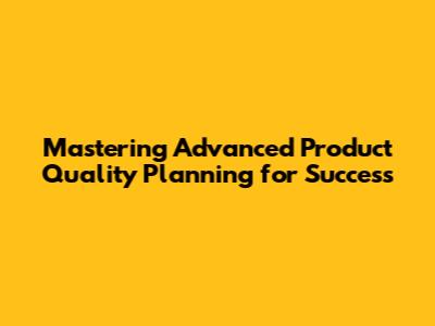 Mastering Advanced Product Quality Planning For Success
