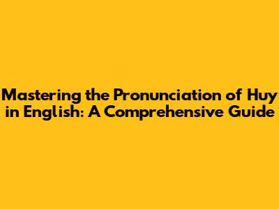 Mastering The Pronunciation Of 'Huy' In English: A Comprehensive Guide