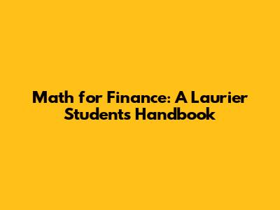 Math For Finance: A Laurier Student's Handbook