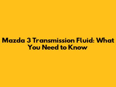Understanding Your Mazda 3's Transmission Fluid Needs