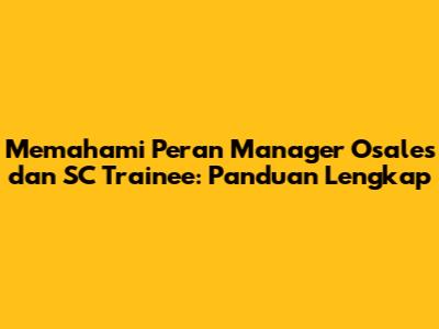 Memahami Peran Manager Osales Dan SC Trainee: Panduan Lengkap