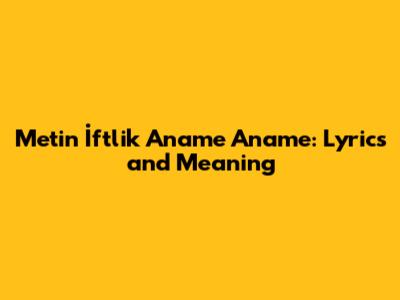 Hey guys! Ever stumbled upon a song that just hits different? That's how I felt when I first heard "Aname Aname" by Metin İftlik. This track has this unique vibe, you know? It's one of those songs that gets stuck in your head, and you find yourself humming the tune without even realizing it. But beyond the catchy melody, there's a whole lot packed into those lyrics. If you're like me and love diving deep into what a song is really about, then you've come to the right place! We're going to break down the Metin İftlik Aname Aname lyrics, explore the meaning behind them, and see why this song resonates with so many people. So, grab your favorite beverage, get comfy, and let's get this lyrical party started!