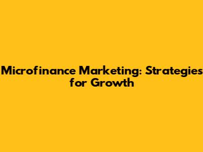 Microfinance Marketing: Strategies For Growth