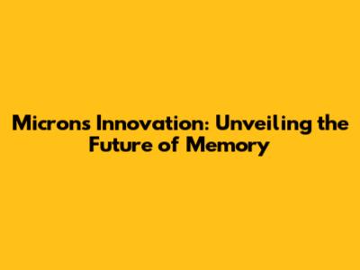 Micron's Innovation: Unveiling The Future Of Memory