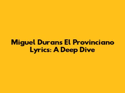 Miguel Duran's El Provinciano Lyrics: A Deep Dive