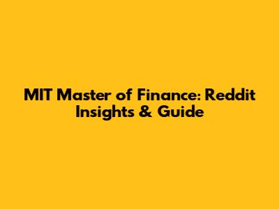 MIT Master Of Finance: Reddit Insights & Guide