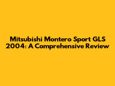Mitsubishi Montero Sport GLS 2004: A Comprehensive Review