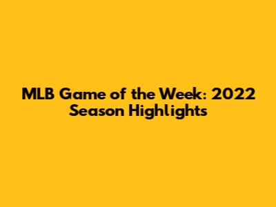 MLB Game Of The Week: 2022 Season Highlights