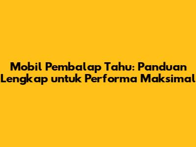 Mobil Pembalap Tahu: Panduan Lengkap Untuk Performa Maksimal