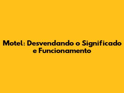 Motel: Desvendando O Significado E Funcionamento
