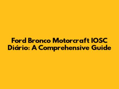 Hey guys! Are you Ford Bronco enthusiasts looking to dive deep into the specifics of your ride? Today, we're going to unravel the mysteries surrounding the Motorcraft IOSC Diário system in your beloved Bronco. This guide is crafted to be your ultimate resource, providing clear, insightful, and practical information. So, buckle up and let’s get started on this exciting journey of automotive discovery!
