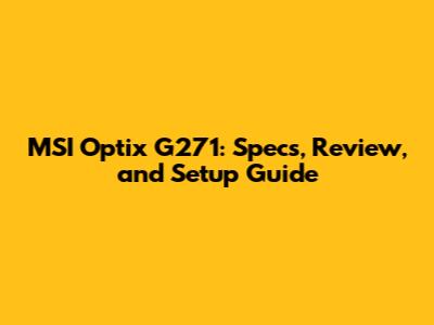 MSI Optix G271: Specs, Review, And Setup Guide