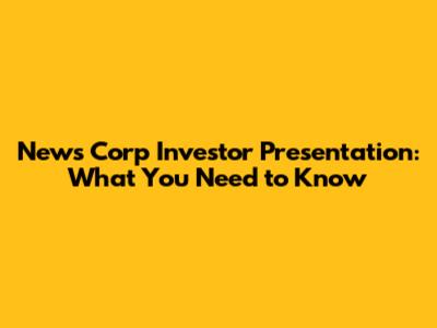 News Corp Investor Presentation: What You Need To Know