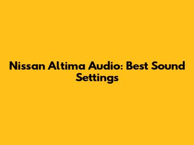 Nissan Altima Audio: Best Sound Settings
