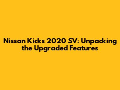 Nissan Kicks 2020 SV: Upgraded Features Unveiled