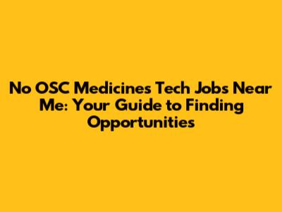 No OSC Medicines Tech Jobs: Find Opportunities Near You