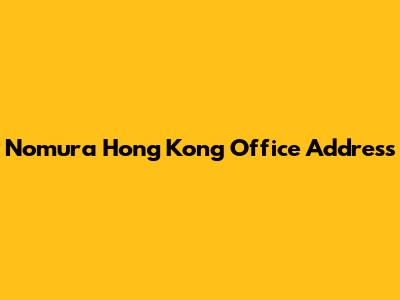 Nomura Hong Kong Office: Find The Address & Contact Info