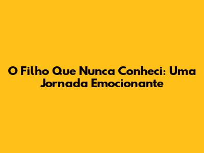 O Filho Que Nunca Conheci: Uma Jornada Emocionante