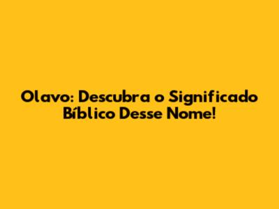 Olavo: Descubra O Significado Bíblico Desse Nome!
