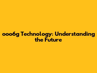 Ooo6g Technology: Understanding The Future