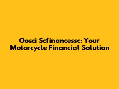 Oosci Scfinancessc: Your Motorcycle Financial Solution