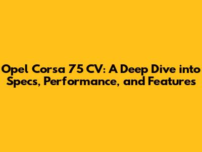 Opel Corsa 75 CV: Specs, Performance, And Features