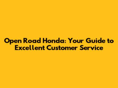 Open Road Honda: Your Guide To Excellent Customer Service