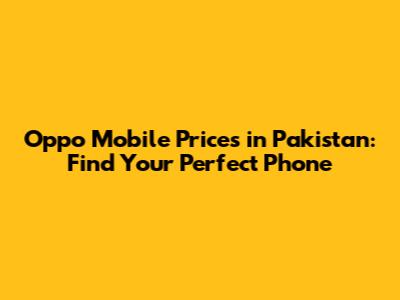 Oppo Mobile Prices In Pakistan: Find Your Perfect Phone