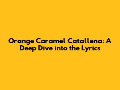 Orange Caramel Catallena: A Deep Dive Into The Lyrics