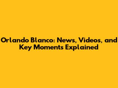 Orlando Blanco: News, Videos, And Key Moments Explained