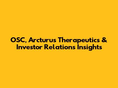 OSC, Arcturus Therapeutics & Investor Relations Insights