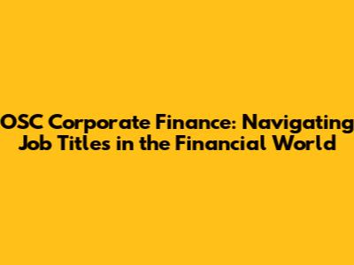 OSC Corporate Finance: Job Titles