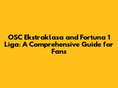 OSC Ekstraklasa & Fortuna 1 Liga: Your Ultimate Guide