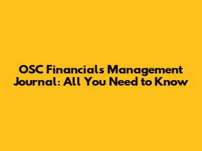 OSC Financials Management Journal: All You Need To Know