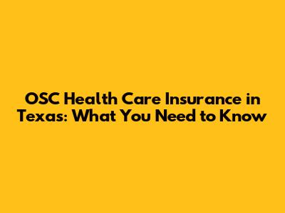 OSC Health Care Insurance In Texas: What You Need To Know