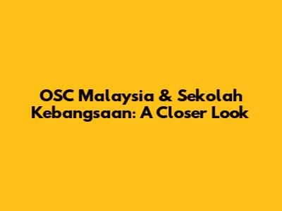 OSC Malaysia & Sekolah Kebangsaan: A Closer Look