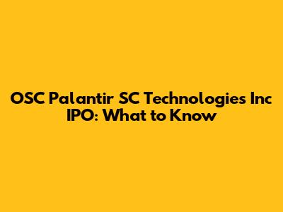OSC Palantir SC Technologies IPO: What To Know