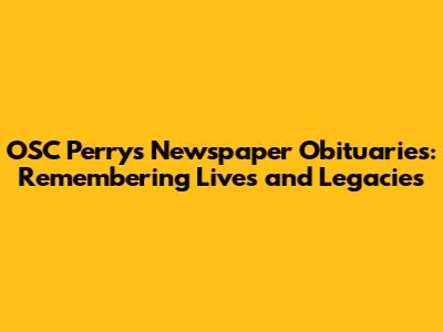 OSC Perry's Newspaper Obituaries: Remembering Lives And Legacies