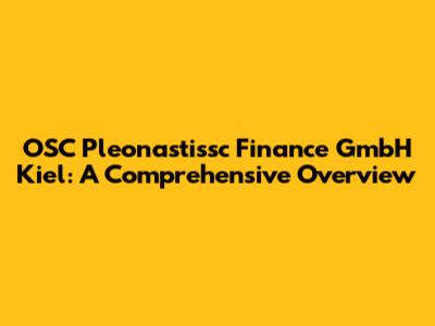 OSC Pleonastissc Finance GmbH Kiel: A Comprehensive Overview