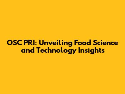 OSC PRI: Food Science & Technology Insights