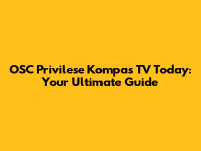 OSC Privilese Kompas TV Today: Your Ultimate Guide