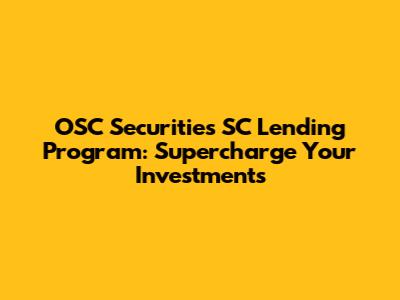 OSC Securities SC Lending: Boost Your Investments